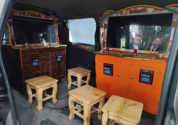 二手面包车内摆两台赌博游戏机成移动赌场 |