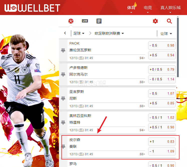 【WELLBET吉祥坊】欧足联 皮尔森vs曼联(曼联-1) |